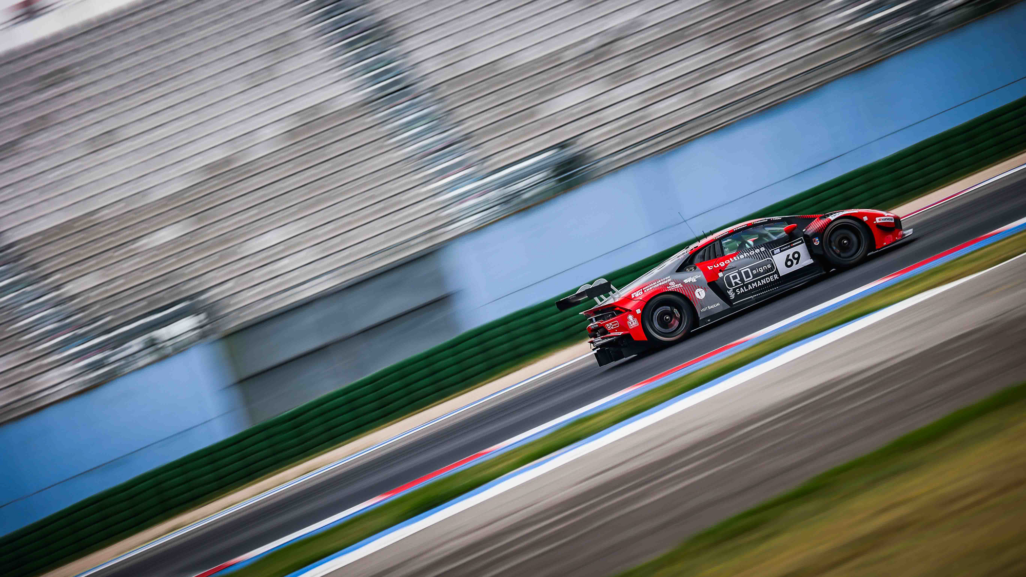 A consistent run in qualifying by reigning GTX Drivers’ champions Audrius Butkevicius, Nicola Michelon and Paulius Paskevicius, competing for the first time with Tim Müller, meant the #69 Lamborghini started the race 9th overall (4th in GT3-AM), and continued running top five in-class across the opening stages. Indeed, a collision between fellow GT3-AM contenders Land Motorsport and Haas RT, plus a separate on-track incident for overall leader Herberth Motorsport meant RD Signs was running 4th overall and 2nd in GT3-AM at half-distance.