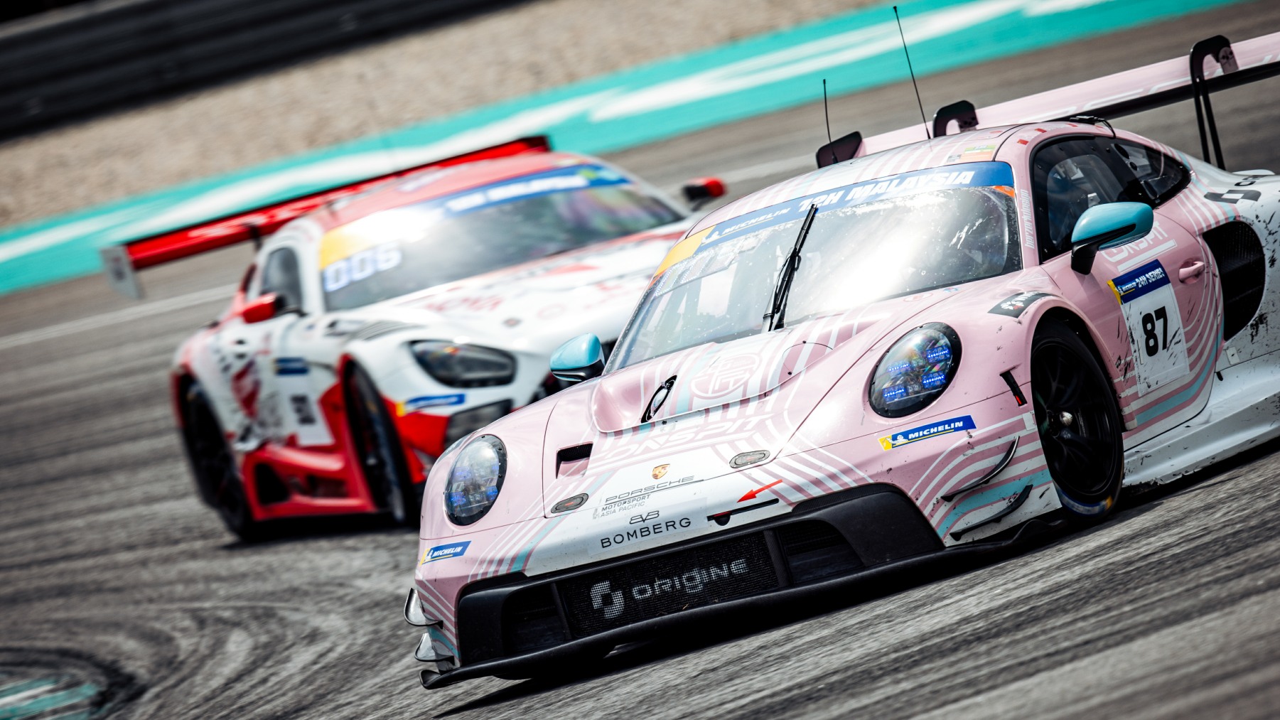 Behind the Climax Mercedes the Origine Porsche held third, with Yuan, and Dominic Ang had sliced into fourth in the Viper Niza Racing Mercedes-AMG – from sixth. Robert Renauer made fabulous progress in the Herberth Porsche from the back of the GT3 grid, the team having missed qualifying due to electrical issues, and he was up into the podium placings after roughly half an hour.