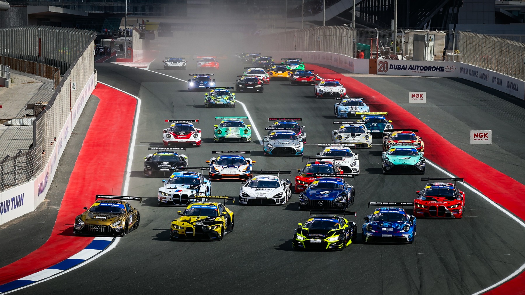 The race started with Benjamin Paque just holding the lead on the inside at Turn One in the pole qualifying TFT Racing Mercedes-AMG GT3 EVO, but van der Linde had soon moved ahead in the No.669 BMW. Incredibly, from eighth on the grid, Loek Hartog rocketed into third and he then made quick work of Paque to take second in the No.10 Herberth Motorsport Porsche 911 GT3 R (992).