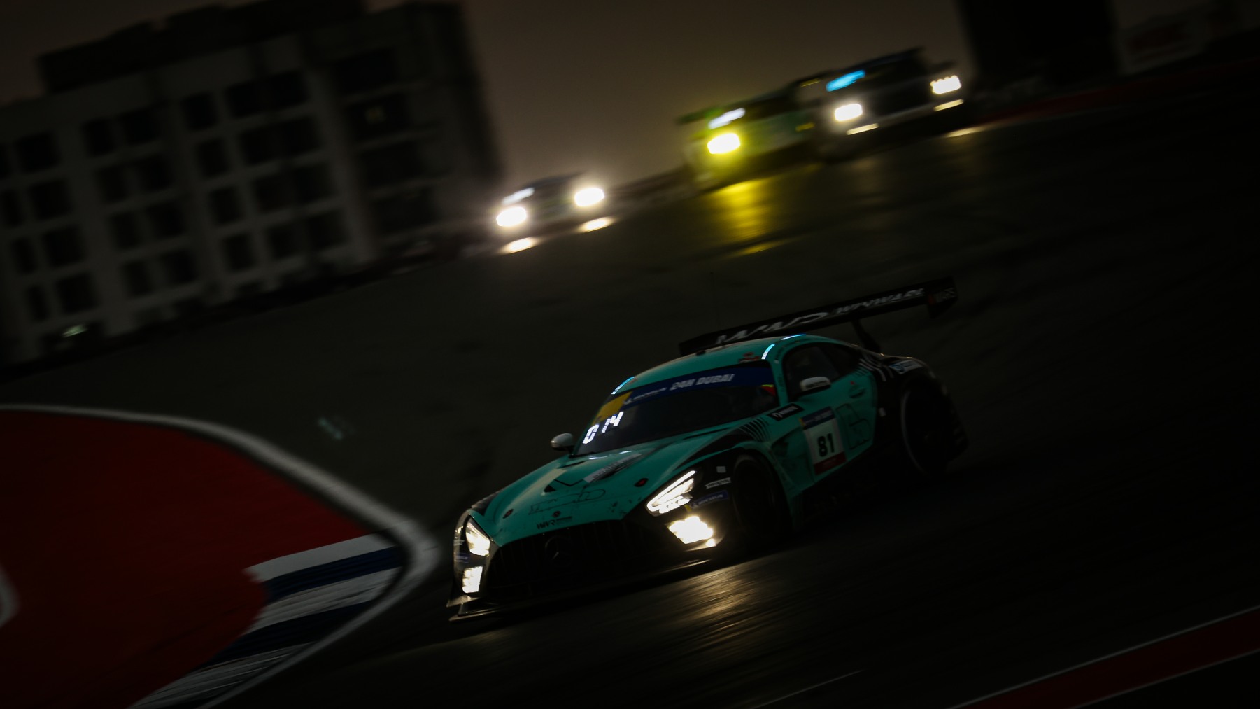 Hour eight then delivered a massive blow for two of the lead contenders. First, the No.81 Winward Mercedes-AMG came to a halt at Turn Eight minus its right-rear wheel and with damage caused which triggered retirment – driver Marvin Dienst in disbelief.