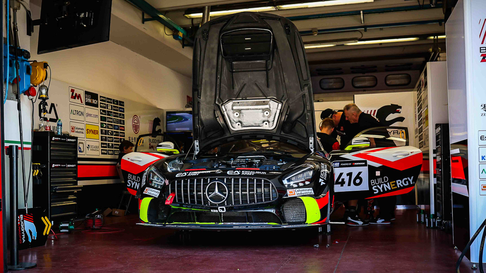 Tellingly, the weekend got off to a difficult start for Buggyra when its race chassis was heavily damaged in an off during private testing on Wednesday. So much so in fact that a spare chassis had to be transported in overnight and prepared ahead of Free Practice and Qualifying on the Friday. Vršecký, Koloc and Adam Lacko dutifully repaid their mechanics’ efforts by claiming GT4 class pole, though a troubled start to the race meant the #416 Mercedes-AMG had slipped to 3rd after the opening hour. Further time would be lost with brake problems  and heavier-than-expected tyre wear during Lacko’s opening stint on the Saturday before the fuel pump issue struck.