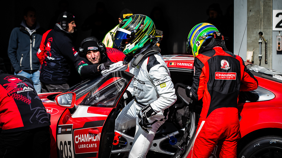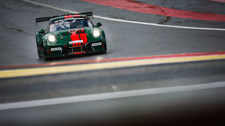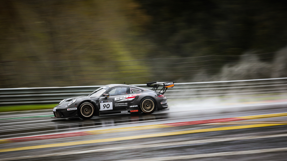 The Juta Racing Audi R8 LMS GT3 EVO II (#71, Lukas Sundahl / Lars Viljoen / Arunas Geciauskas / Sigitas Ambrazevicius) worked its way up from 10th on the grid, led outright for three laps, and will line-up 7th on tomorrow’s grid. A late-race fuel stop unfortunately pushed 2017 Overall GT Teams’ ‘Europe’ champion Hofor Racing (#11, Michael Kroll / Chantal Prinz / Alexander Prinz / Maximilian Partl / Kenneth Heyer) off the lead lap in the closing moments of ‘part one.’ Even so, the Mercedes-AMG GT3, which recovered from a moment in the gravel at Blanchimont, will restart 8th overall.