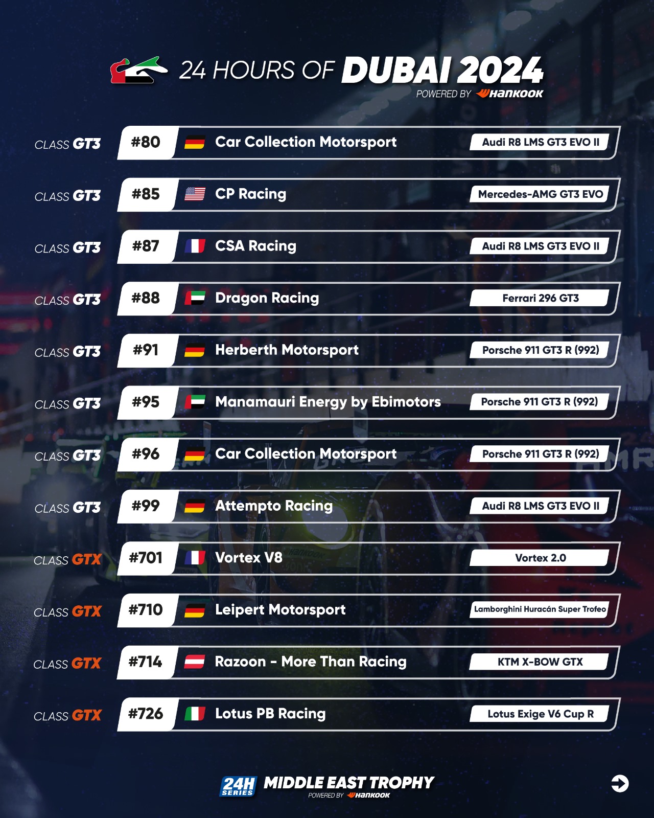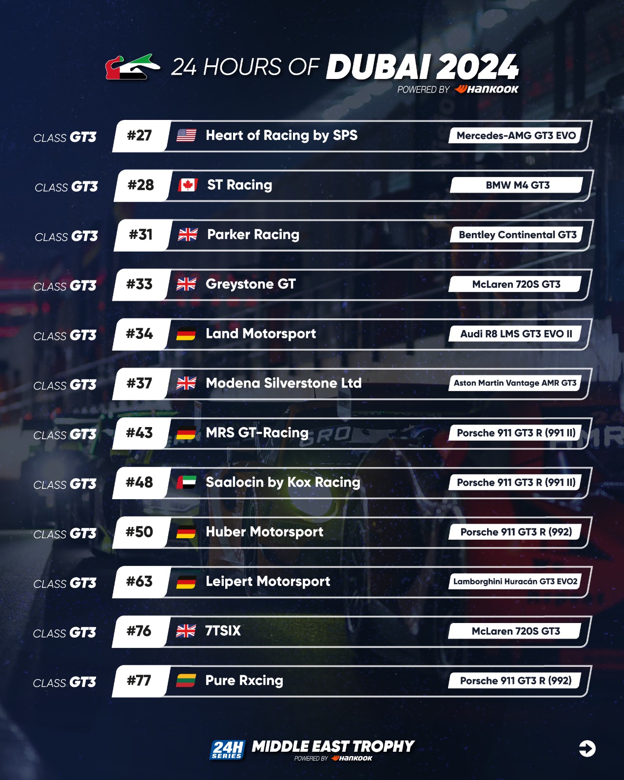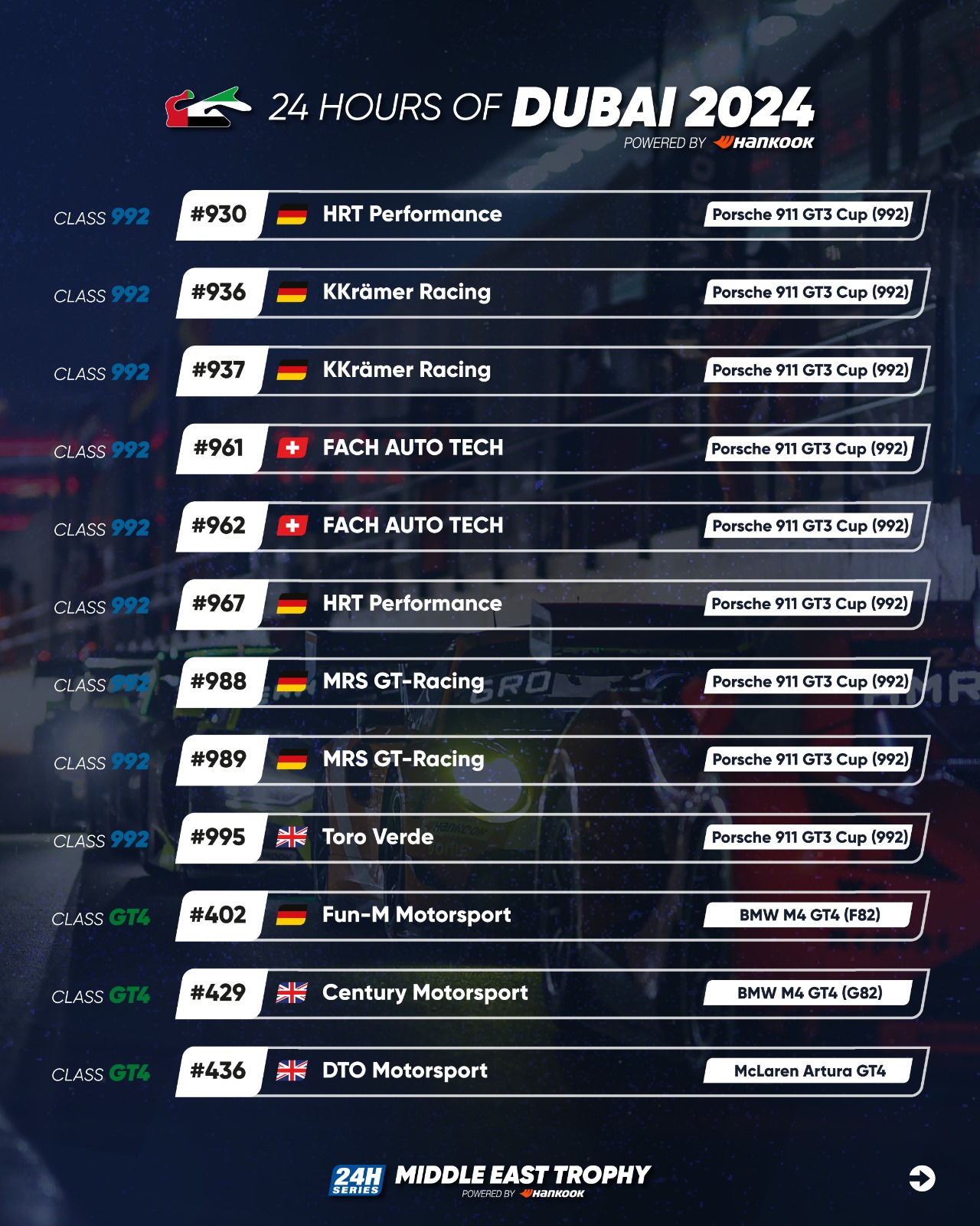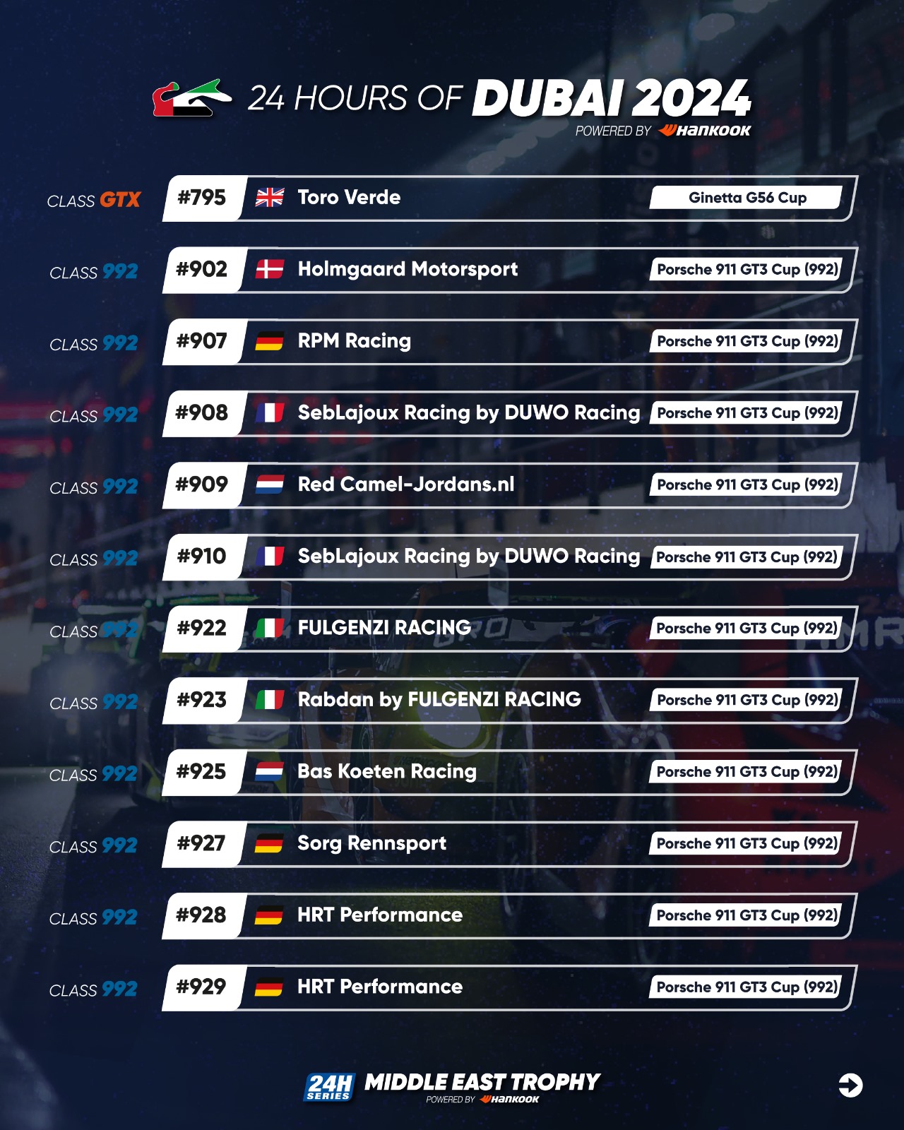 Full details regarding the 2024 Hankook 24H DUBAI are available at 24hseries.com.