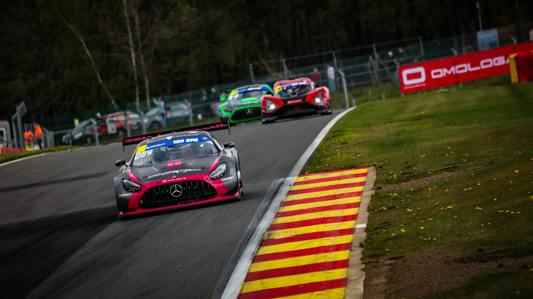 Proton Huber Competition’s Porsche 911 GT3 R (992) had a series of troubles, but showed terrific speed with Klaus Bachler, while HAAS RT’s No.21 Audi R8 LMS GT3 EVO II had to stop from the race lead at the midway point due to an engine fire. Era Motorsport, another with great pace, was at the front with just over two hours to go but a change of gearbox was needed in the No.81 Ferrari 296.