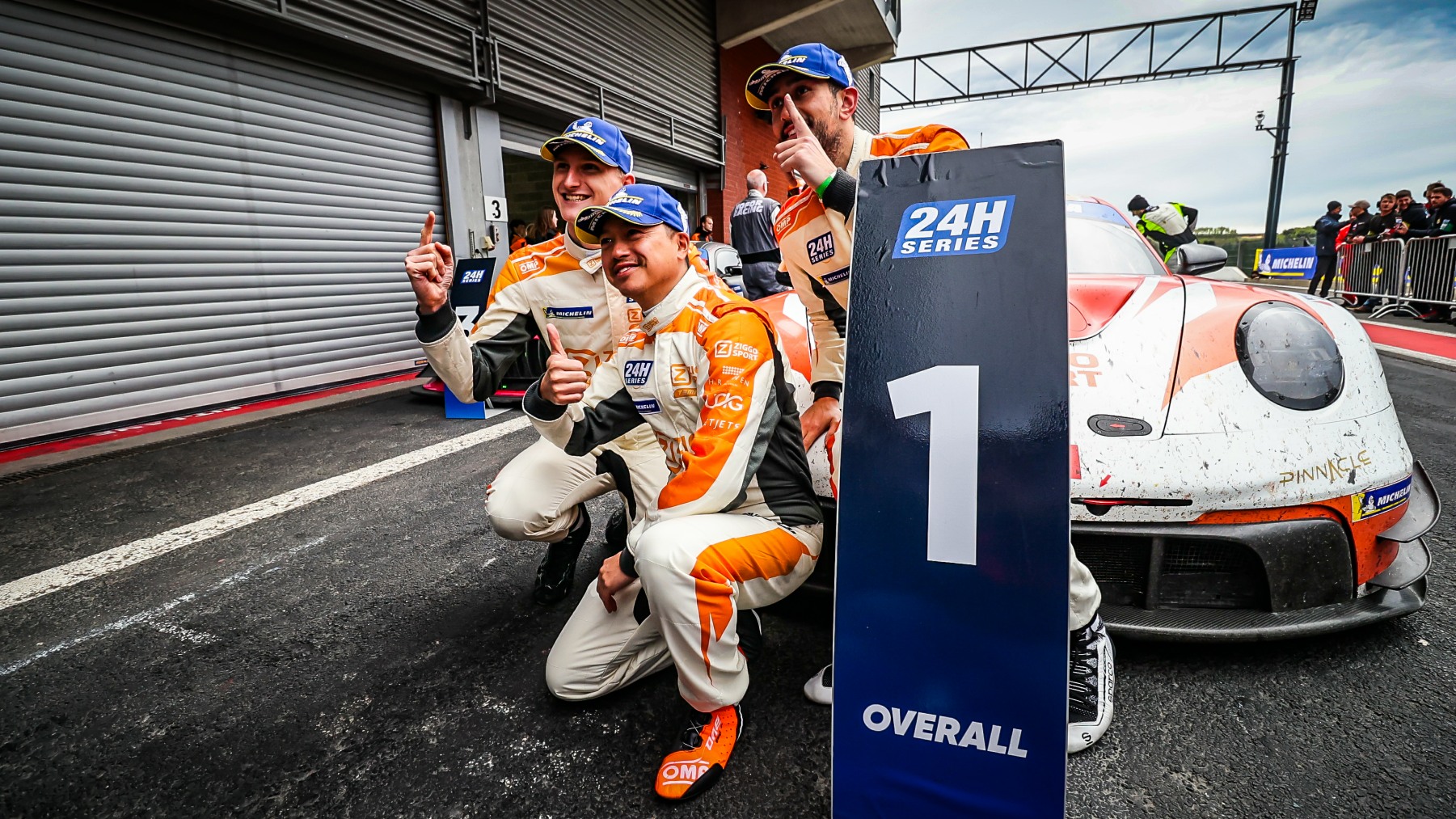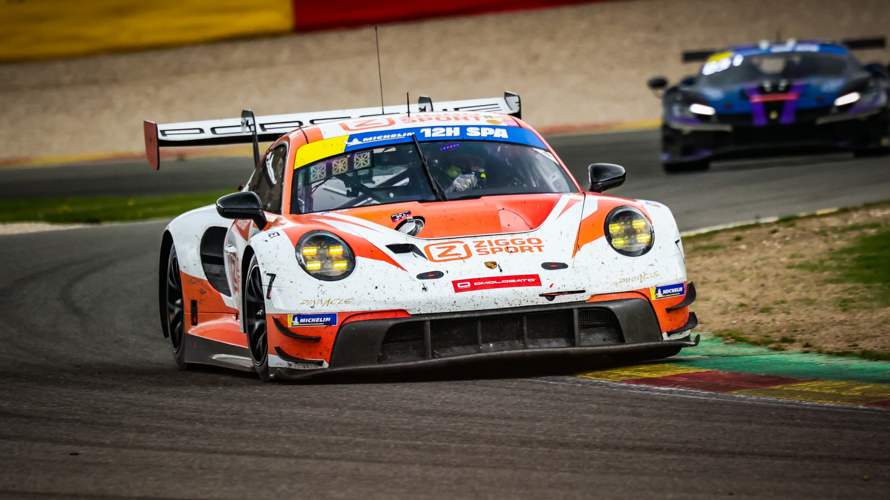 Following the first stops Hui took over behind the wheel of the Ziggo Sport Porsche to lead, then Heinrich moved to the front in the SP4 class in-development Porsche 911. For the remainder of the first five hours both Porsches were right there and Ziggo Sport took the flag over 30 seconds ahead.