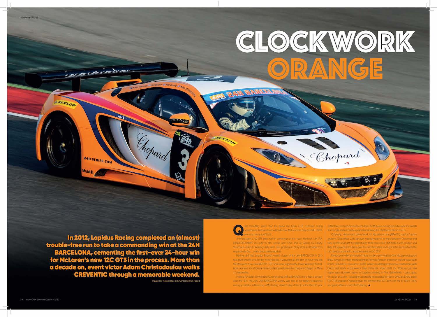 In 2012, Lapidus Racing completed an (almost) trouble-free run to take a commanding win at the 24H BARCELONA, cementing the first-ever 24-hour win for McLaren’s new 12C GT3 in the process. More than a decade on, event victor Adam Christodoulou walks CREVENTIC through a memorable weekend.