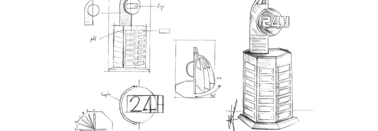 “The upper part of the trophy is completely made of unbending brass used in the watch-making industry. That’s really the best quality. It consists of six brass ‘sails’ – manufactured using a Computerized Numerical Control milling system – that are each 8mm thick, arranged at 15 degrees to form a 90-degree angle. In front of the sails, we placed a big, brass plate showing the ‘24H’ logo, and these vertical elements were all fixed on a brass plate that’s also 8mm thick.”
