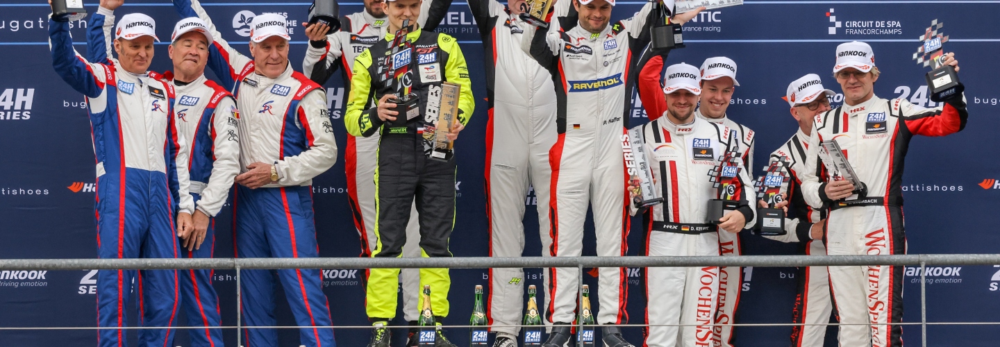 The JUTA Racing Audi R8 LMS GT3 EVO I (#71, Julius Adomavičius / Andrius Gelžinis / Jonas Gelžinis) rounded out the overall top five, and collected ‘GT3’ class victory, after a meticulous run. The Car Collection Motorsport Audi R8 LMS GT3 EVO II (#34, Johannes Dr. Kirchhoff / Max Edelhoff / Tim Müller) had also been on course for a top five finish at Spa-Francorchamps, and even led the race outright on Saturday, but eventually fell back after suffering several punctures, the third coming in the closing moments of the event. The Audi nevertheless managed to retain 3rd in GT3-AM.