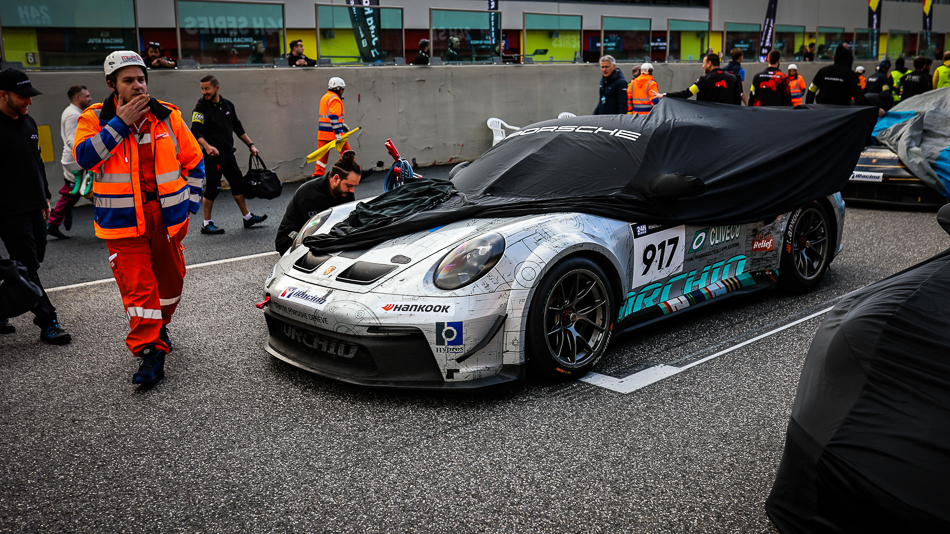 A one-place grid penalty for an incorrect driver ID in qualifying meant the #963 Porsche slipped to 5th in-class on the grid. Misbach, fortunately, managed to avoid several spinning cars at turn two, but the avoiding action meant the Frenchman dropped back to 7th. By contrast, the sister #917, driven F. Villiger, gained three places at the start, moving up to 11th.